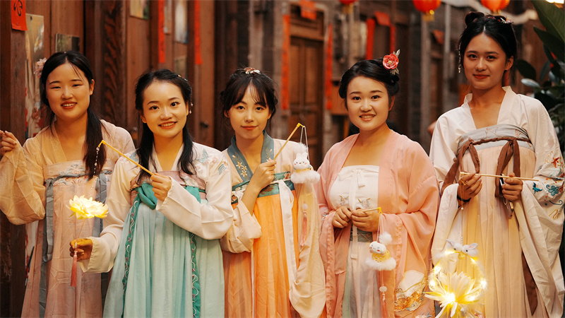 67岁的退休教师张阿姨身着明制袄裙,与年轻人一同漫步灯影中:“和年轻人一起提灯游古街,仿佛回到了年轻时代。”